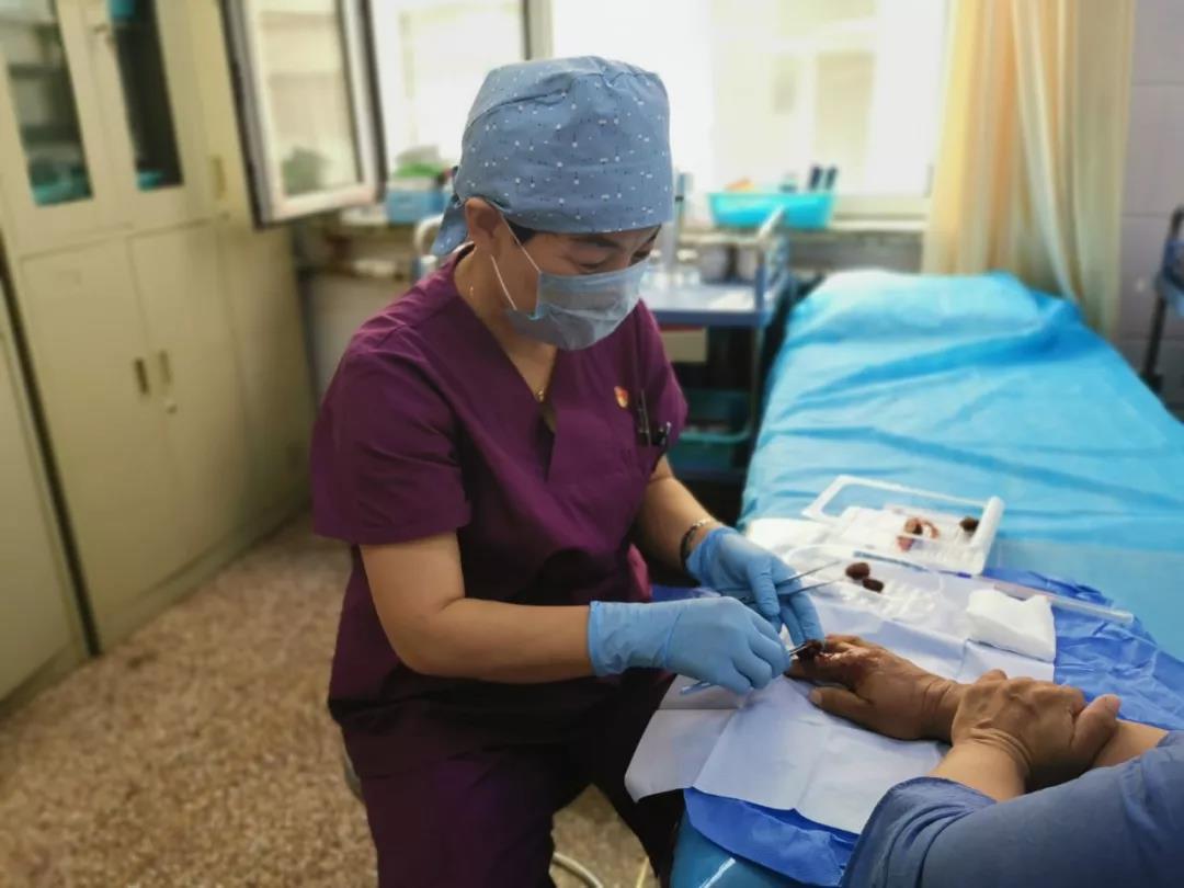 十几天前,一位患者的食指因为感染溃烂化脓,当地医院建议截掉食指,但同时医生建议想保手指可以到包头医学院第一附属医院(以下简称包医一附院)造口伤口门诊,目前,经过2次治疗,患者伤口已经逐渐好转,全家人对一附院造口伤口门诊护士长赵丽英也是感激万分。