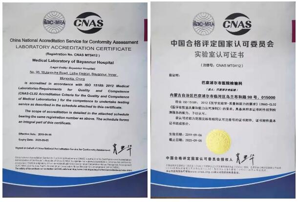 改善医疗服务进行时——巴彦淖尔市医院取得中国合格评定国家认可委员会实验室认可证书
