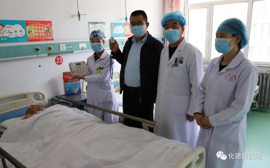 为了方便老年患者康复出院后的随访工作,给患者提供更加优质、贴心的医疗服务,化德县医院与某科技公司建立合作关系,将“一键式”移动电话型智能终端送到患者手中。