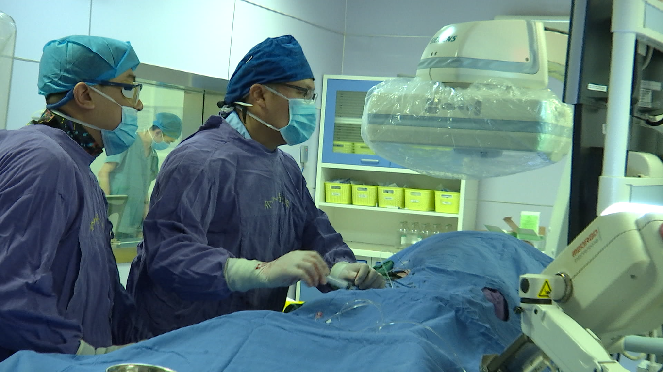 经过介入科值班医生韦伟会诊后,立即联系主任李建明、副主任医师王泽鑫,主治医师张志超、护士张春龙、刘洋,准备行急诊经颈静脉肝内门静脉内支架分流术(TIPS)。从会诊决定治疗方案后不到半小时,介入科医生护士团队准备就绪,联合为患者实施急诊介入手术。