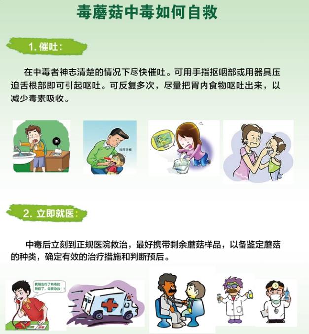 误食毒蘑菇中毒后应如何自救。图片来源:中国疾病预防控制中心