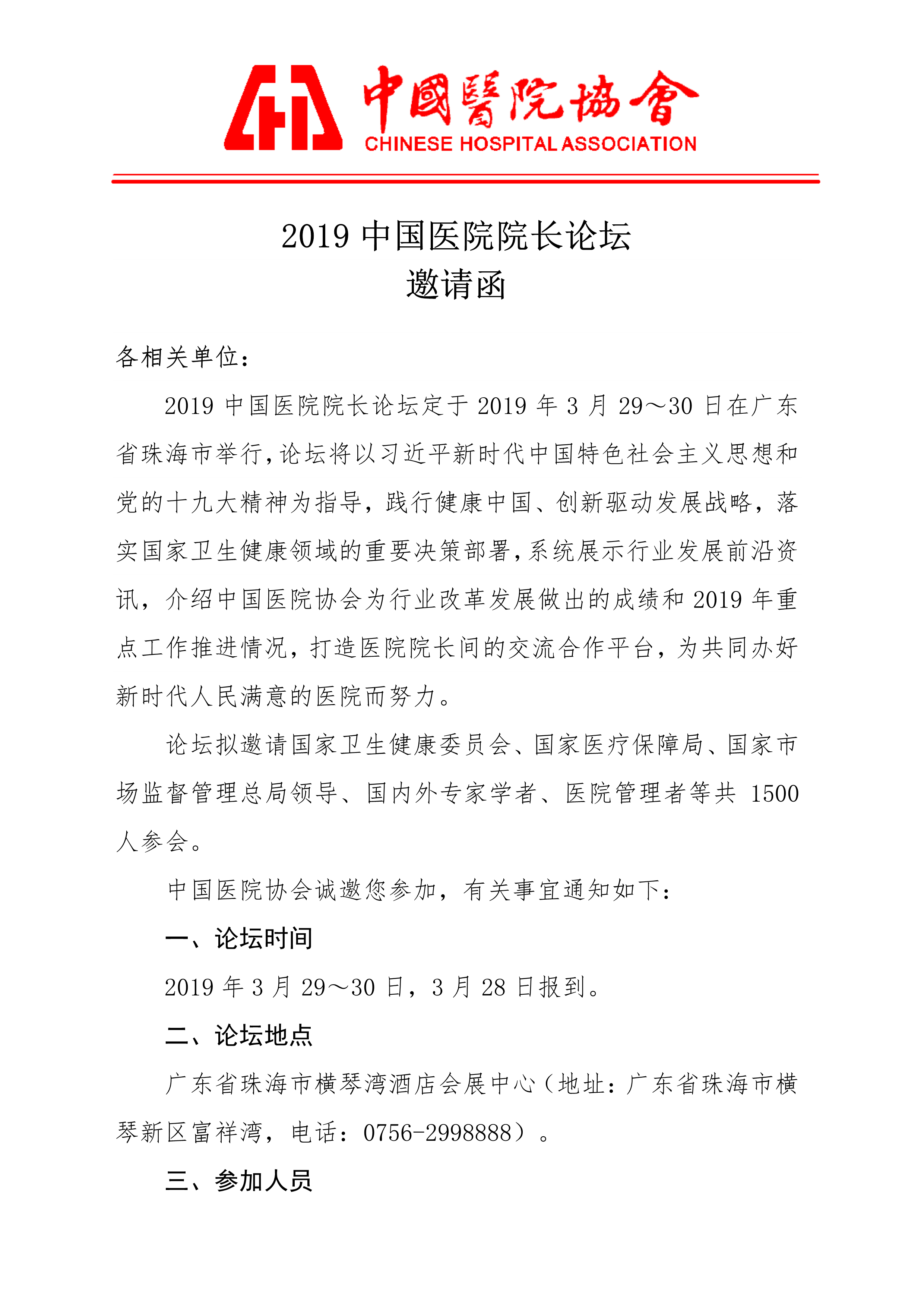 2019中国医院院长论坛邀请函
