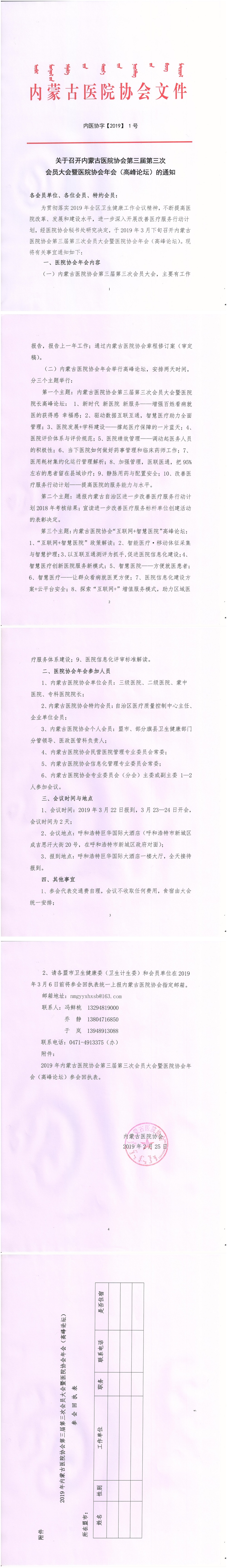关于召开内蒙古医院协会第三届第三次会员大会暨医院协会年会(高峰论坛)的通知